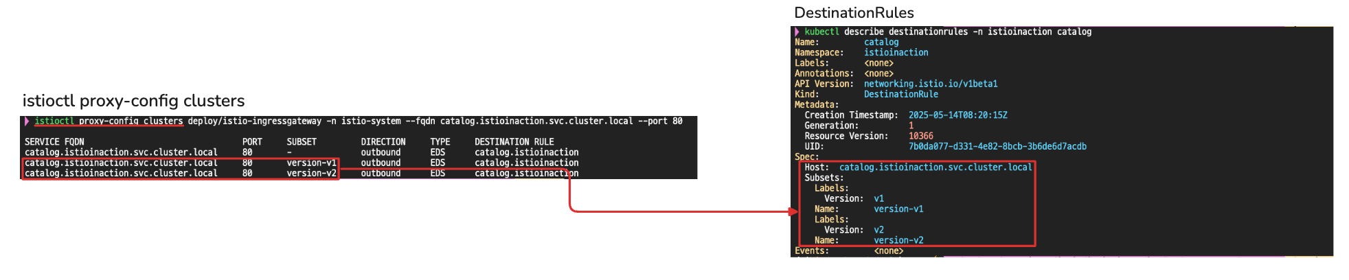 DestinationRule: catalog for "catalog.istioinaction.svc.cluster.local"