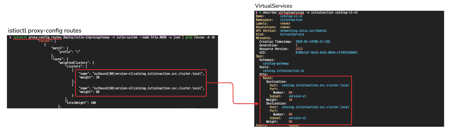kubectl apply -f ch10/catalog-virtualservice-subsets-v1-v2.yaml -n istioinaction