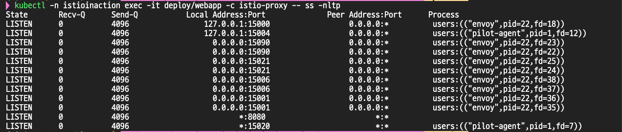 kubectl -n istio-system exec -it deploy/istiod -- netstat -tnl
