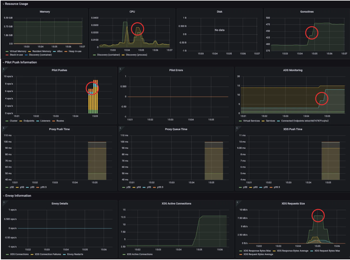 서비스 배포 시에는 설정 생성 및 전파로 인해 istiod의 리소스 사용률이 일시적으로 급증할 수 있다. 성능 튜닝을 고려하기 전에 불필요한 푸시가 발생하고 있지는 않은지, 리소스 할당이 적정한지 먼저 확인하자.