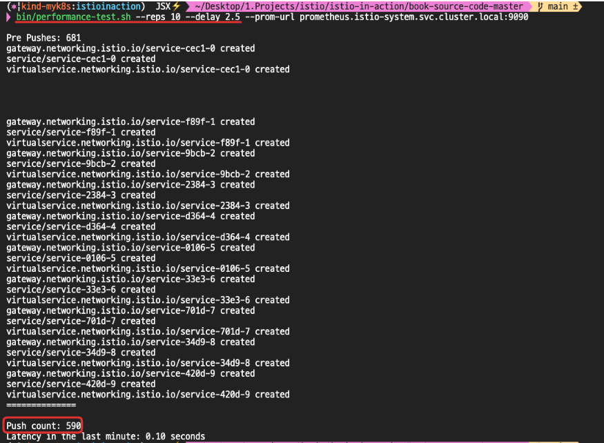 앞서, 성능 측정 테스트 스크립트에서 딜레이 시간에 따라 푸시 횟수가 달라지는 것이, 바로 Istio 디바운스 메커니즘에 의해서다.
