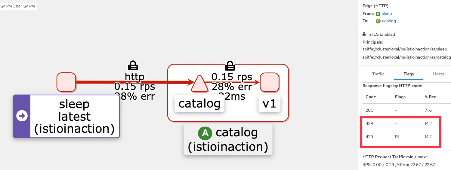 정상적으로 작동할 경우 응답에 X-Test-Cohort: dark-launch-7 헤더가 포함된다. 그러나 실습 환경에 따라 오류로 인해, invalid header value for: x-test-cohort 헤더가 보인다. 하지만 응답을 확인해 보면 istioinaction: it works!이 보이는 것으로 보아, EnovyFiliter가 잘 작동함을 확인할 수 있다.